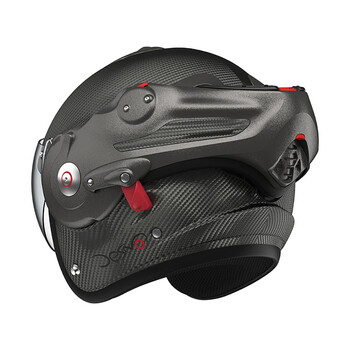 • Déverrouillage centralisé de la mentonnière à une seule main : En position Jet, l'écran se relevant et s'articulant automatiquement pour se rapprocher du visage évitant ainsi les infiltrations d'air.